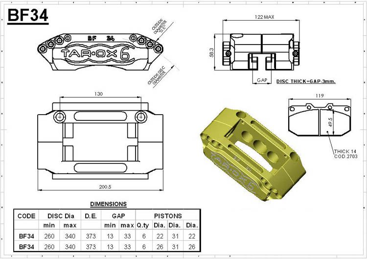 Tarox BF34 6-Kolben Bremssattel