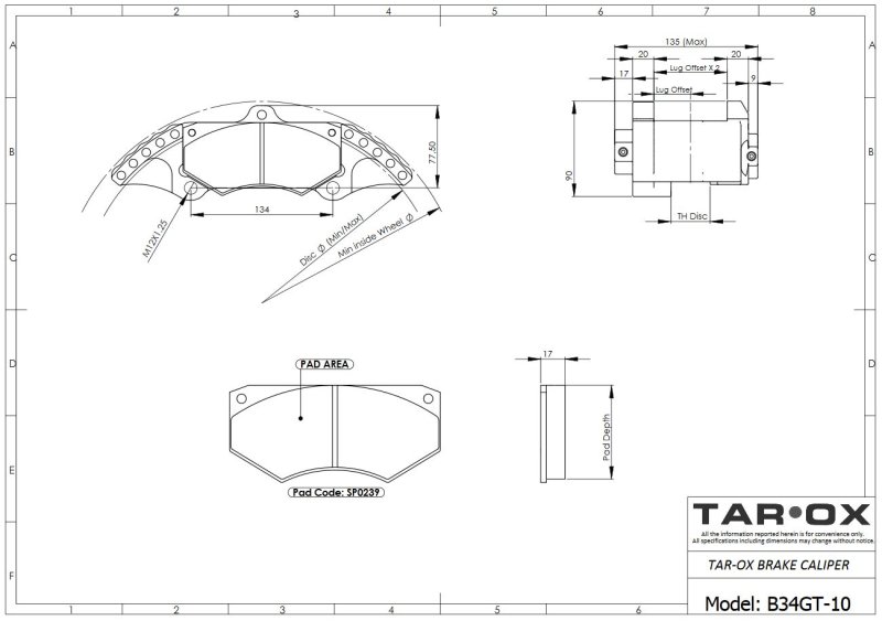 Tarox B34GT 6-Kolben Bremssattel